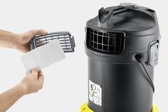 Consiste di filtro plissettato piatto e filtro in metallo per sporco grossolano. Filtro aria di scarico separato (solo per AD 4 Premium) Molto comodo perché la sostituzione del filtro è facilitata e il vano raccolta è facile da svuotare e pulire.