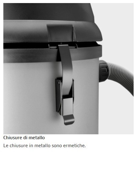 - L'NT 27/1 è caratterizzato inoltre dal supporto accessori e da un gancio per riporre il cavo di alimentazione. L’ergonomia maniglia di trasporto con supporto per il tubo di aspirazione rende facile trasportare e spostare l'aspiratore completo di tutti gli accessori.