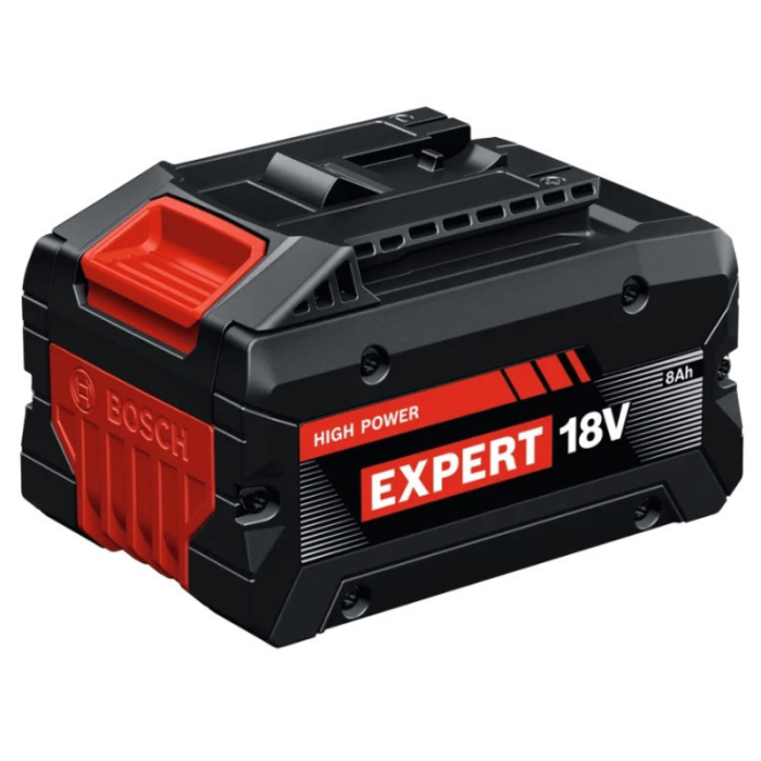 La batteria EXBA18V-80 a prestazioni elevate offre fino al 120% in più di autonomia, per un lavoro eccezionale e senza interruzioni anche negli impieghi gravosi (rispetto alla Professional GBA 18V 4.0Ah; dati di laboratorio di test interni, smerigliatura su acciaio dolce con GWS 18V-15 S + disco lamellare, intervalli di 30 s con pause di 5 s).