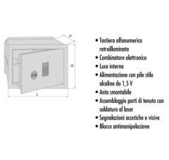 - Cassaforte a combinazione da murare DGT Vision Cisa 82710.40 (cm 42x30x20)