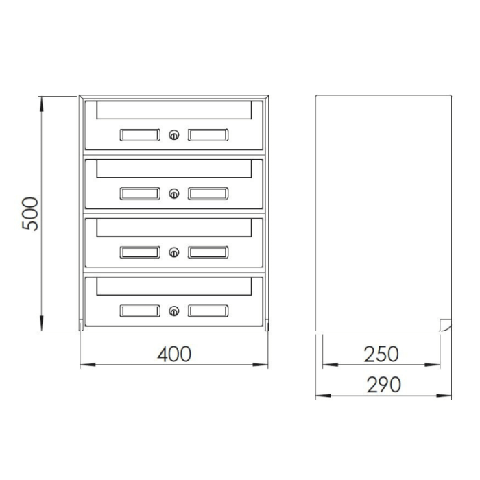 Casellario postale 4 cassette (SC5) a ritiro anteriore argento SILMEC 4B1-501.72