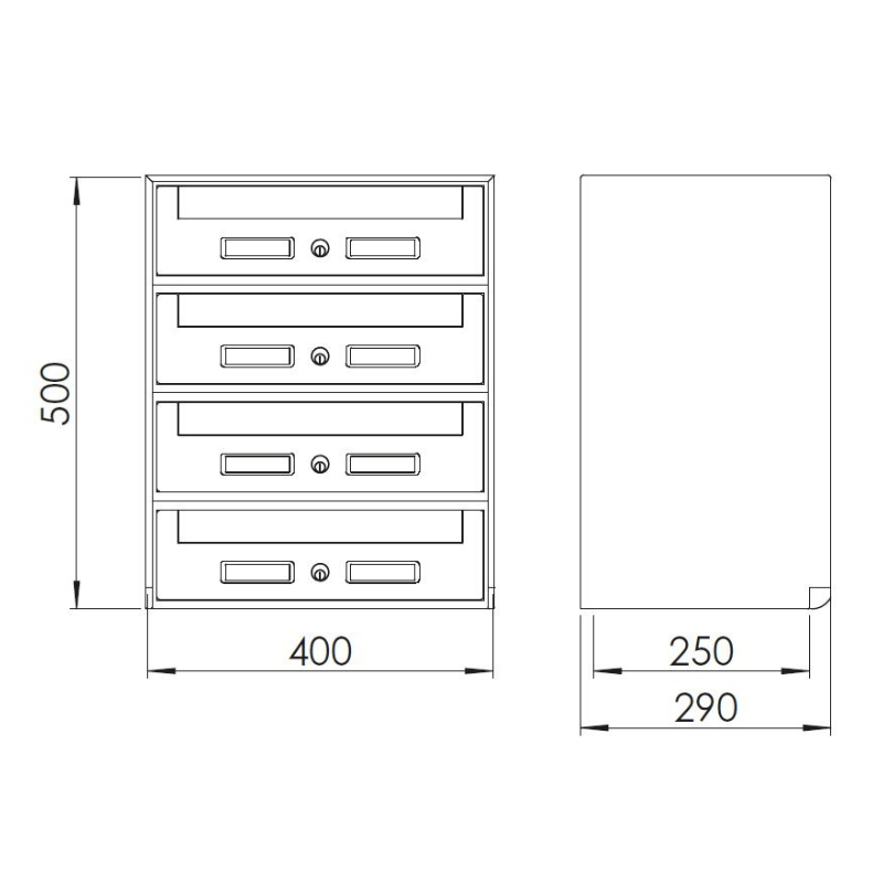 - viene fornito già composto in gruppi da 4 cassette: SC5 (cassetta standard) con ritiro della posta nella parte anteriore