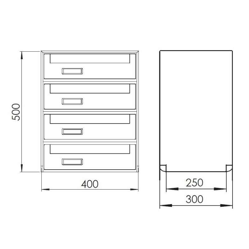 COMPOSTO DA NR. 4 CASSETTE SU SINGOLA COLONNA base 405 mm - altezza 505 - profondità 300 mm
