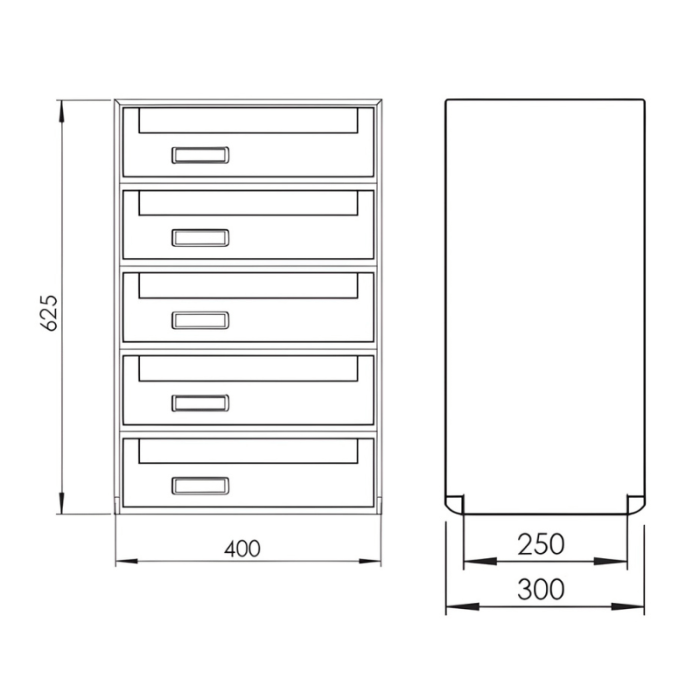 COMPOSTO DA NR. 5 CASSETTE SU SINGOLA COLONNA base 405 mm - altezza 630 - profondità 300 mm