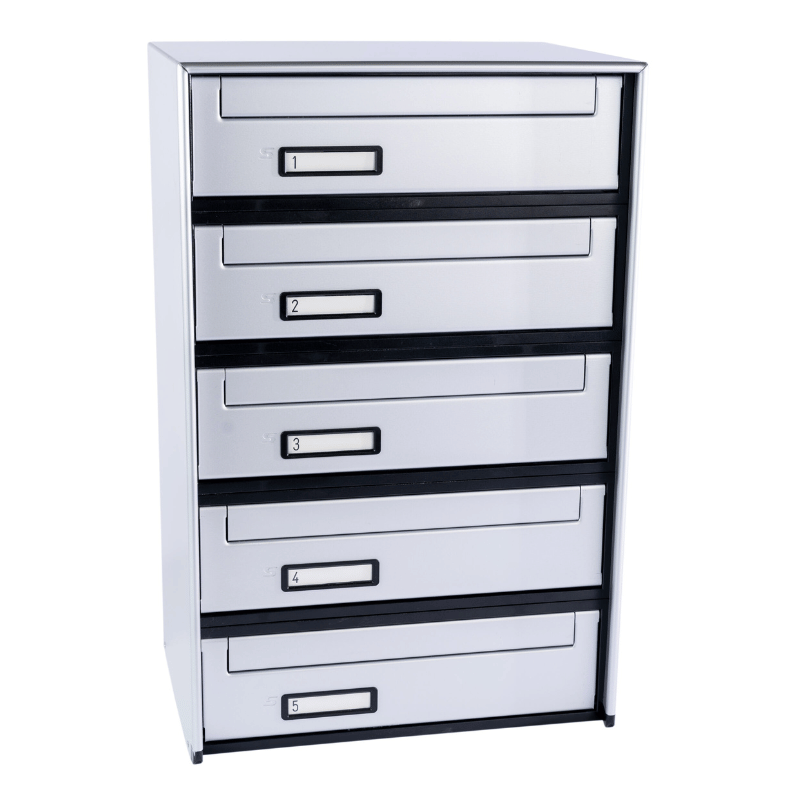 Casellario postale 5 cassette (SC6) a ritiro posteriore argento SILMEC 5B1-601.72