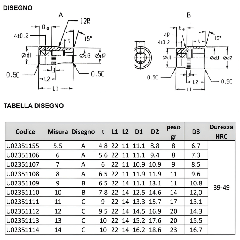 Contenuto: 5,5-6-7-8-9-10-11-12-13-14 mm