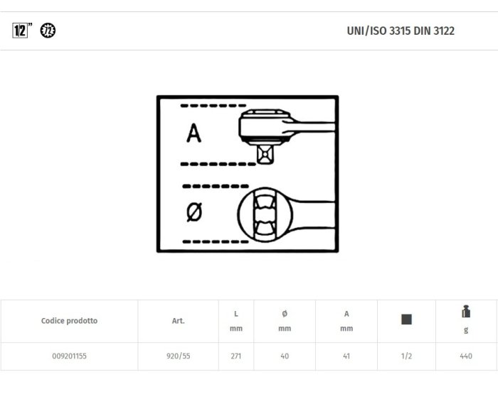 - Chiave a cricchetto reversibile con quadro maschio 1/2" BETA 920/55