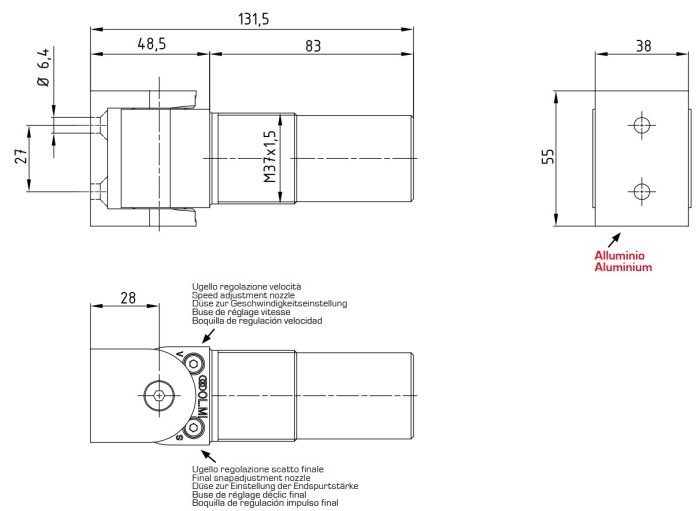 - La regolazione della velocita’ di chiusura e la regolazione della forza dello scatto finale viene fatta tramite la rotazione di 2 ugelli indipendenti.