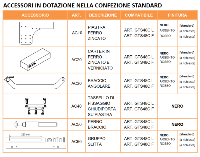 Chiudicancello pedonale OMV GTS48C L argento (con o senza fermo 90°)