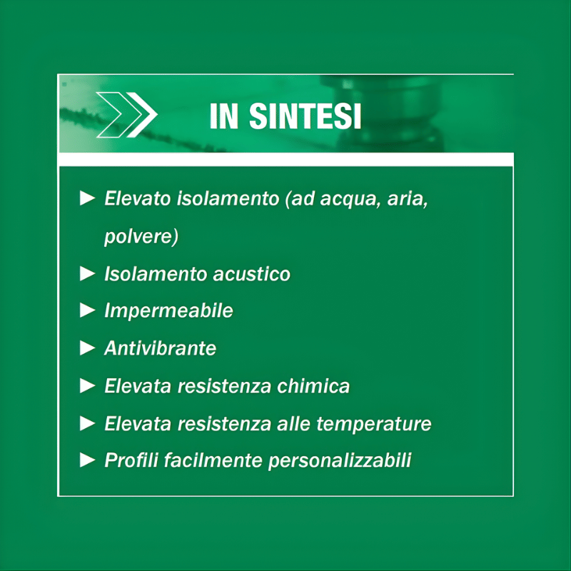 - Diffuse in edilizia come guarnizioni e profili, isolano da acqua, aria e polvere, offrendo inoltre buone performance di isolamento – acustico e termico.