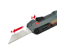 - Utilizza lame Stanley a punta tonda e lama per taglio pellicola cod. 0-10-245.