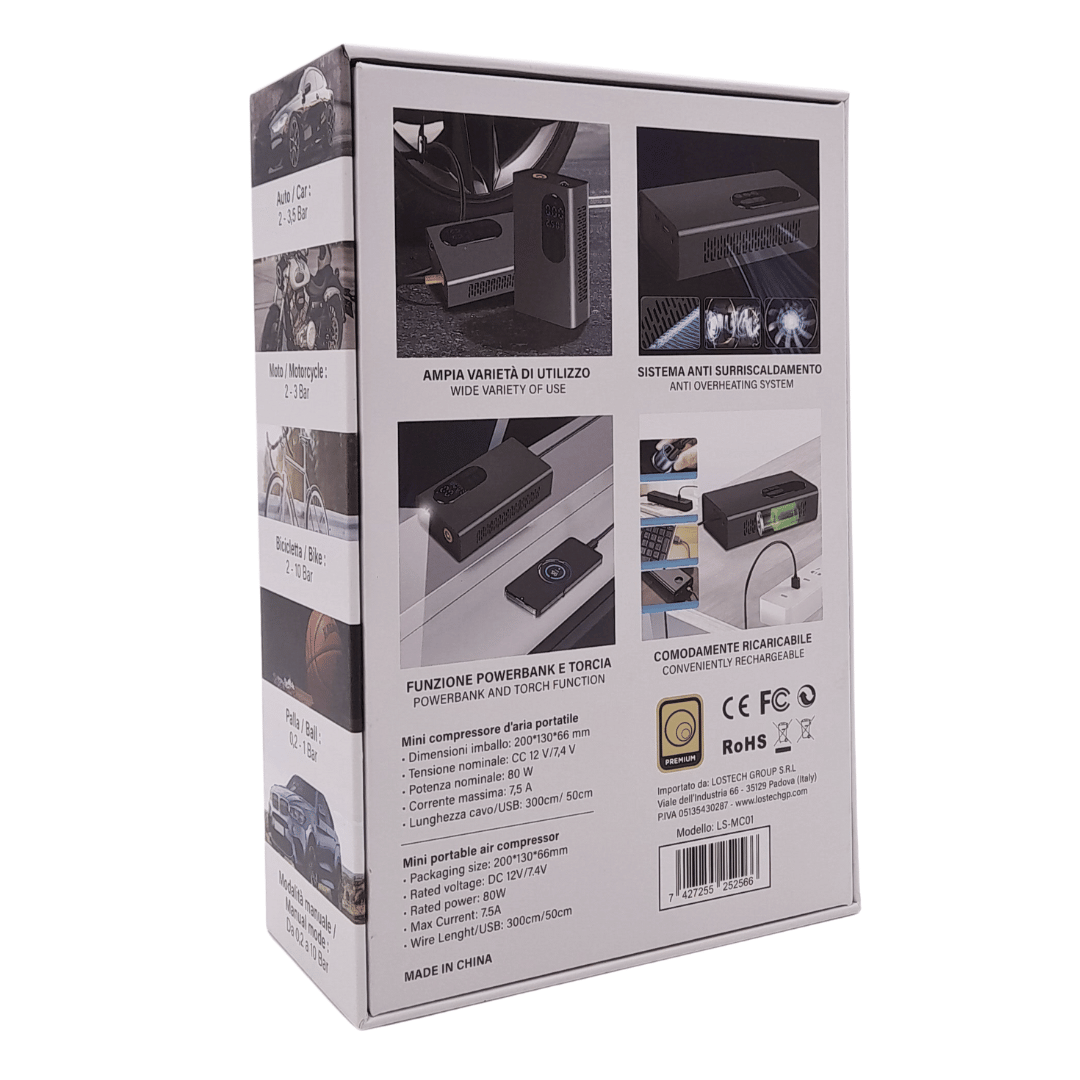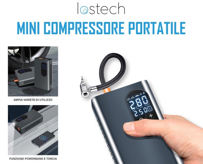 - Mini compressore portatile aria moto auto + power bank + torcia LOSTECH LS-MC01