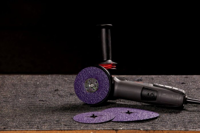 - Il solido supporto in fibra e il forte legame con la resina assicurano una lunga durata e resistenza agli strappi nelle applicazioni di levigatura più impegnative, come la levigatura con pressione di contatto medio-alta, la rimozione di cordoni di saldatura e la smussatura.