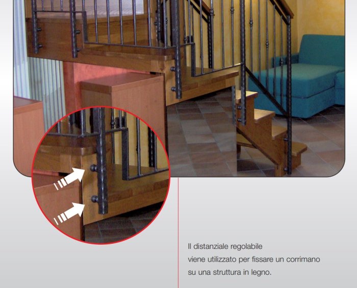 - viene utilizzato per fissare un corrimano su una struttura in legno