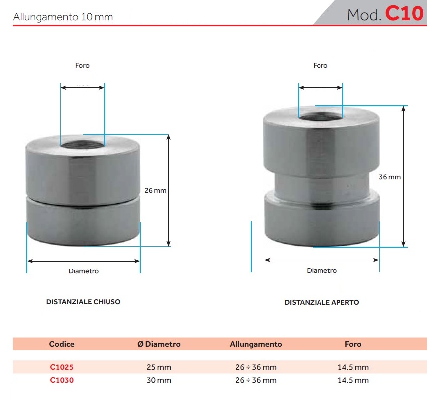 Plebani C10 distanziale cilindrico regolabile 26/36 mm per fissaggio inferriate