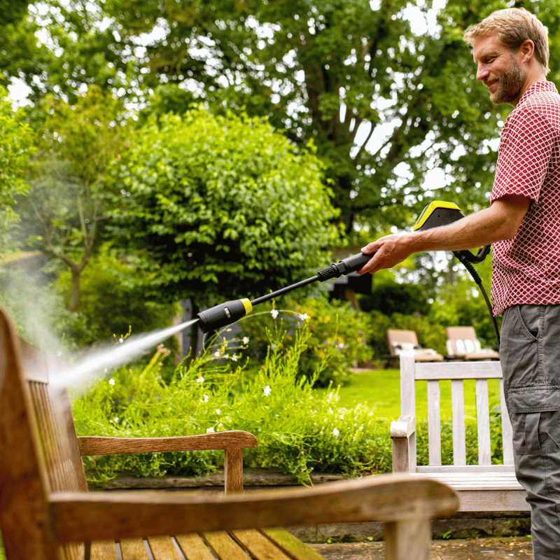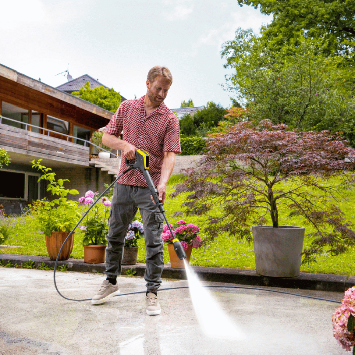 La pressione può essere regolata sullo smartphone tramite una connessione Bluetooth all'app Kärcher Home & Garden, che offre anche un consulente integrato, oltre a suggerimenti e trucchi.