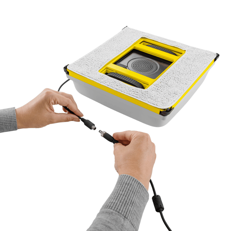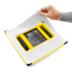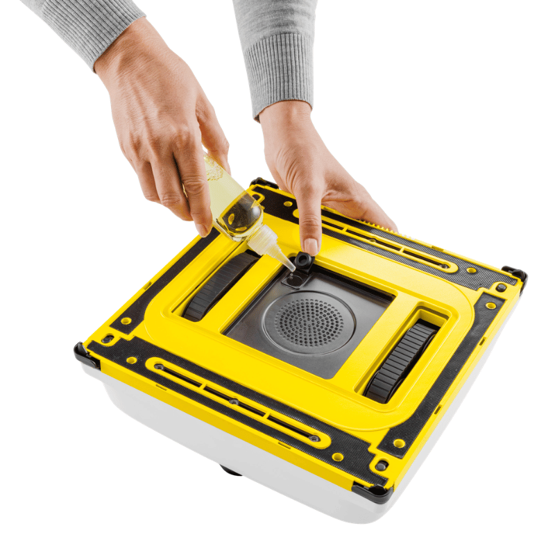 Il detergente per vetri RM 503 in dotazione rimuove in modo affidabile lo sporco, asciuga senza lasciare aloni e consente alla pioggia di scorrere più rapidamente per una pulizia duratura. In caso di interruzione di corrente, l'RCW 4 rimane attaccato al vetro grazie alla batteria di emergenza e al cavo di sicurezza.