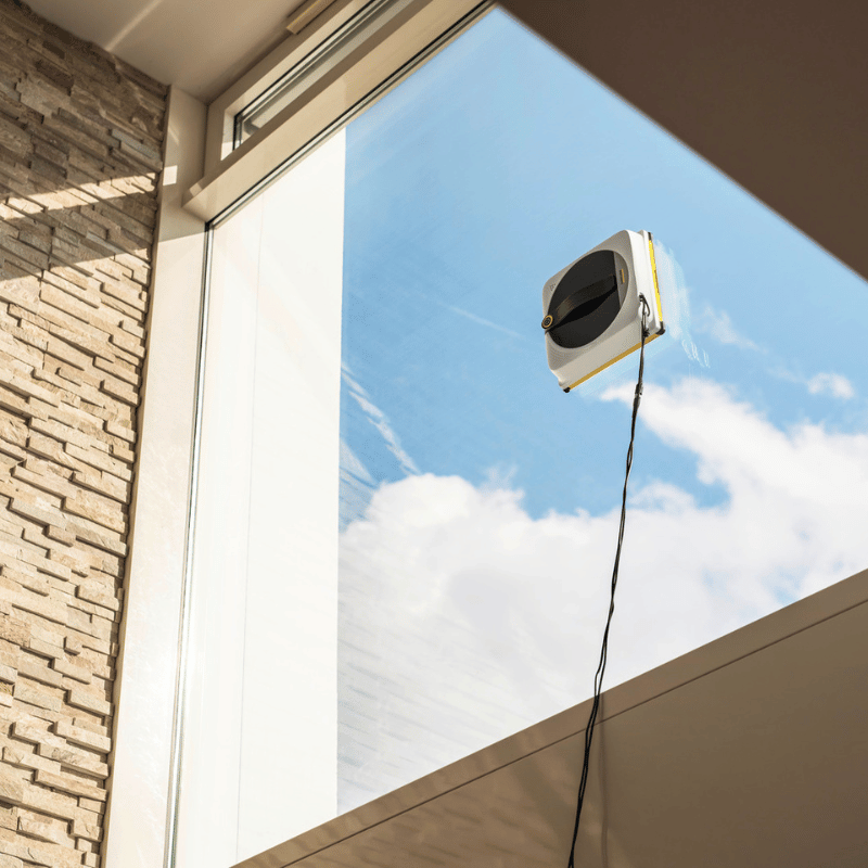 Il robot lavavetri RCW 4 sostituisce la pulizia manuale di finestre grandi e difficili da raggiungere e garantisce vetri trasparenti.