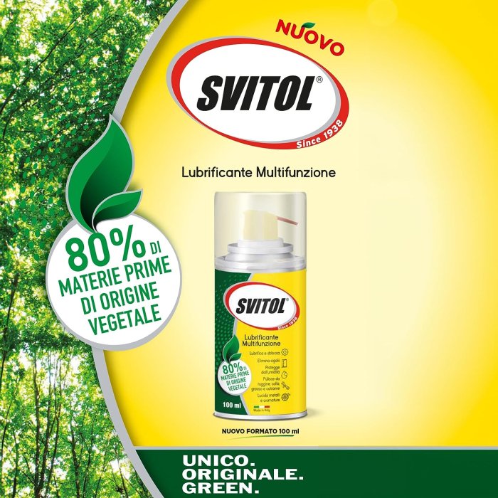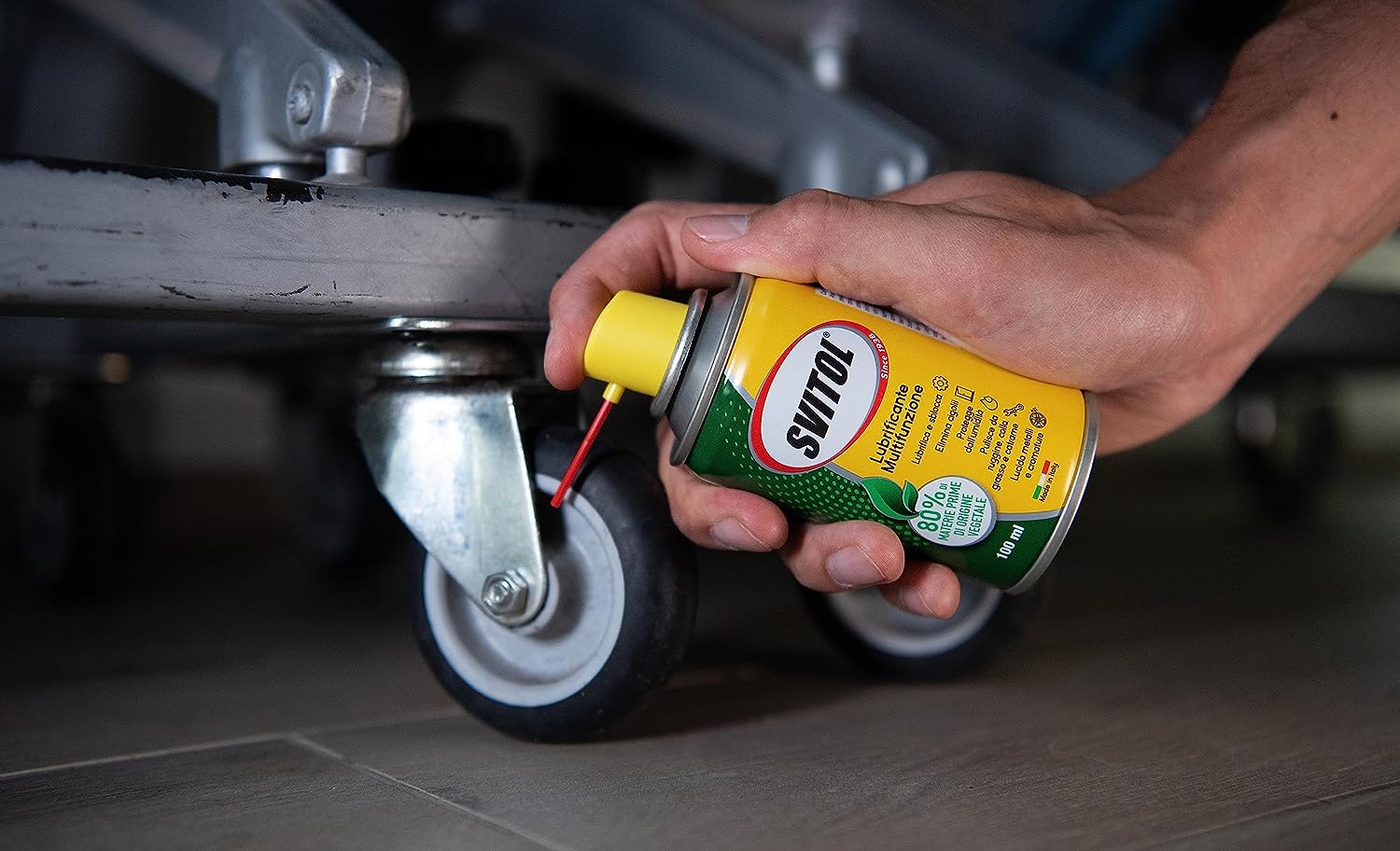 - A base di oli sintetici di origine vegetale e additivi antiusura, ideale per meccanismi, ingranaggi, pulegge. serrature, cerniere, cavi, catene di trasmissione, attrezzature sportive.