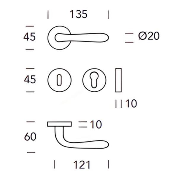 - Maniglia per porte interne completa di rosetta e bocchetta tonde.