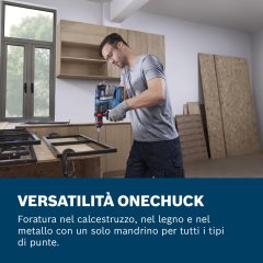 - Mandrino ONECHUCK che può alloggiare punte con codolo SDS plus, cilindrico ed esagonale