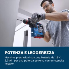 Perfetto per artigiani, installatori, elettricisti, carpentieri e vetrai 🛠️, il GBH 18V-18 X è il martello perforatore Bosch Professional più leggero da 18 V, combinando prestazioni professionali e comfort di utilizzo in ogni situazione.