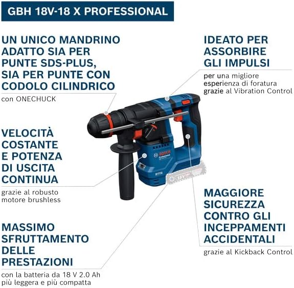 - Martello perforatore Bosch GBH 18V-18 X ONE CHUCK Professional SDS PLUS | fornito senza batterie