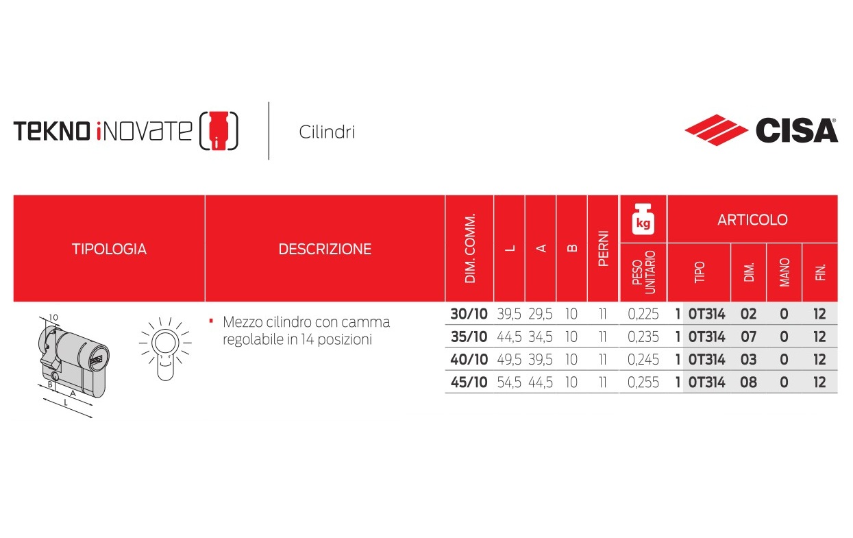 - Mezzo Cilindro Frizionato Cisa TEKNO iNOVATE 0T314 - mm 40 (30/10)