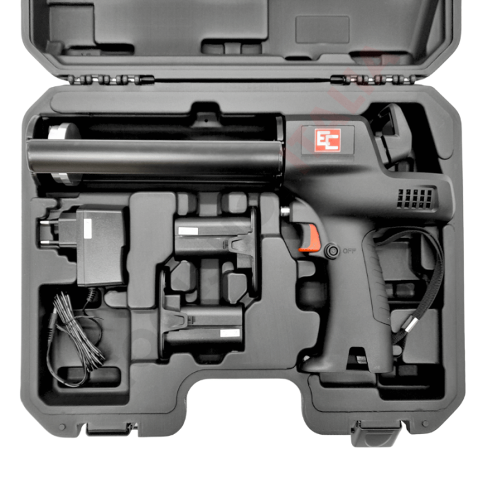 Alimentato da batteria agli ioni di Litio, per l’estrusione di tassello chimico ed ogni tipo di resina bicomponente in cartucce co-axiali, con rapporto di miscelazione 10:1.