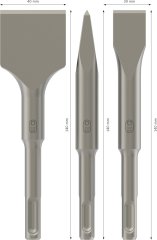 Set di scalpelli PRO SDS plus-4C, a punta 140 mm, piatto 20 x 140 mm, a spatola 40 x 140 mm, 3 pz