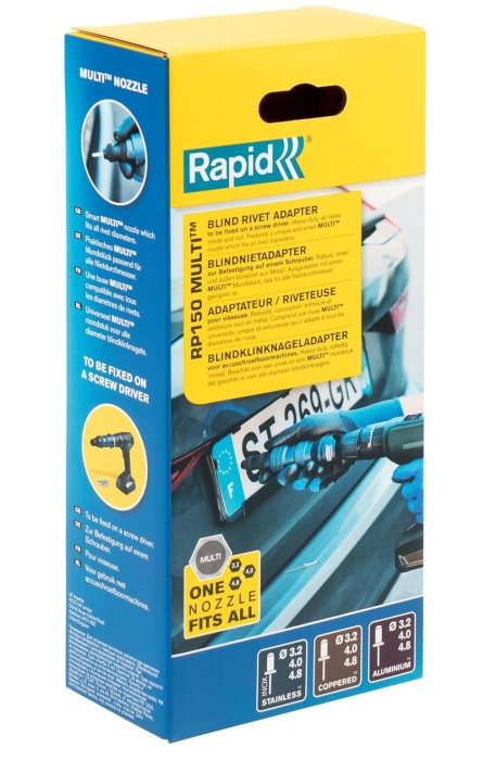 RP150 Multi è un'alternativa pratica e potente alle rivettatrici a batteria. Questo strumento si collega al trapano/avvitatore come una normale punta per forare. Così puoi effettuare in modo più efficiente e senza sforzo riparazioni importanti e lavori di rivettatura impegnativi.