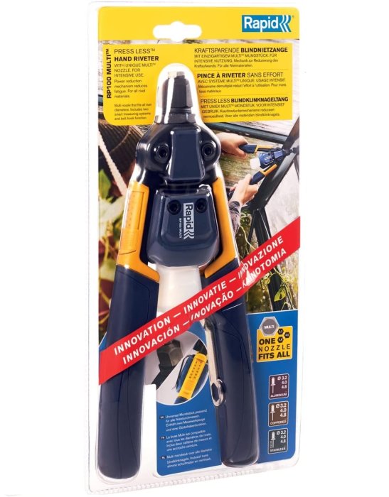 - Rivettatrice Rapid RP100 MULTI per rivetti a strappo da 3,2 a 4,8 mm con moltiplicatore di potenza
