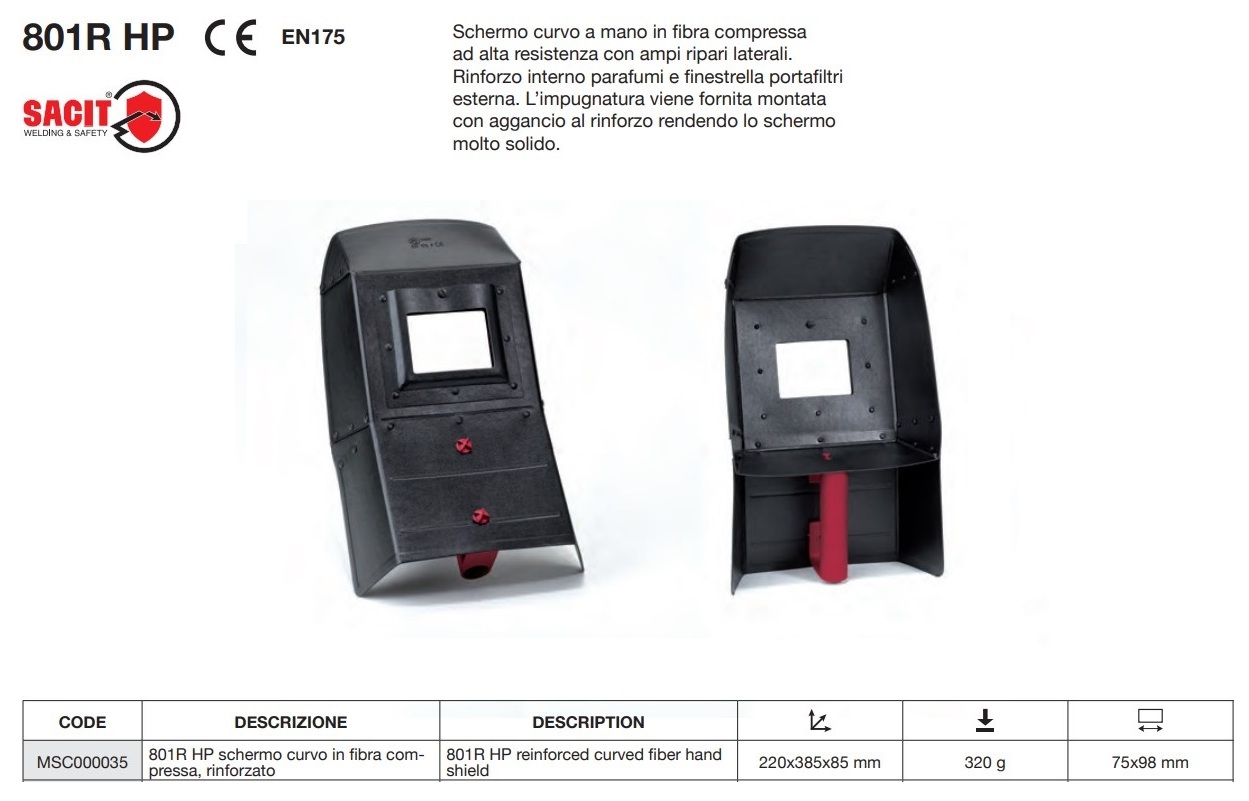 Maschera per saldatura SACIT 801 R HP MSC000035 (vetro mm 75x98)