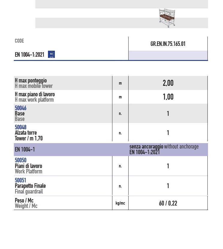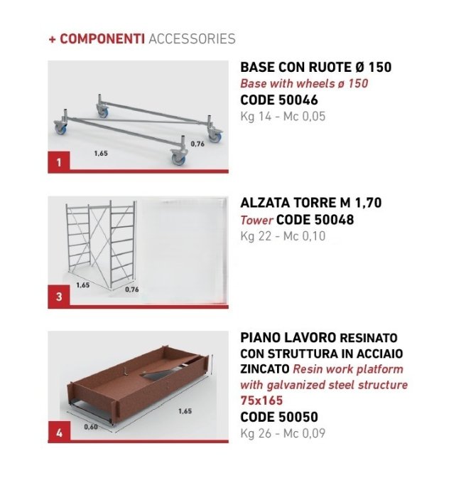 - Ponteggio Trabatello Marchetti GRIM 2m in acciaio zincato con ruote ø 150 mm