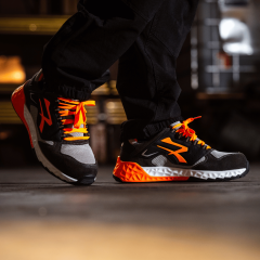 Scarpa antinfortunistica alta con classe di protezione S1PS HI HRO FO SR che combina protezione certificata e comfort evoluto.