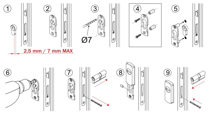Sistema di protezione anti-effrazione per cilindri applicabile su porte in ferro, alluminio o PVC.