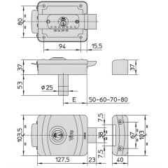 Entrata: regolabile 50-60-70-80 mm con una semplice operazione attraverso la chiave a brugola in dotazione, per la versione con cilindro tondo; 70 mm. per la versione predisposta per cilindri profilati.