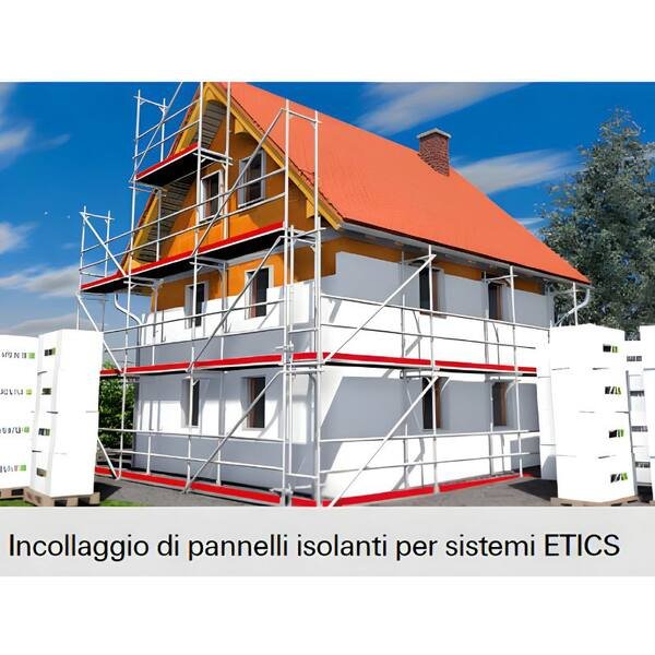 Applicazioni principali: incollaggio di pannelli isolanti, elementi rettificati in pareti divisorie interne, ecc.