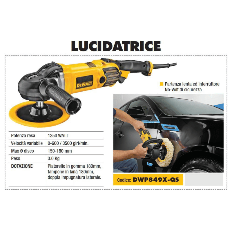 - Dewalt DWP849X-QS lucidatrice 1250W ø 150-180 mm
