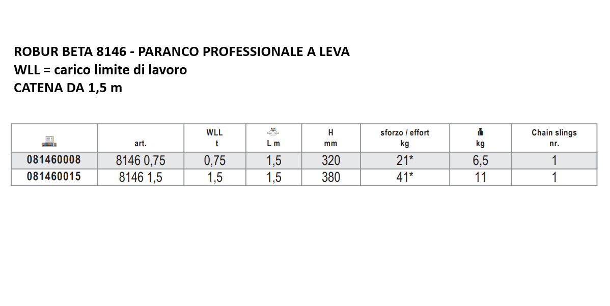 - Paranco a leva Professionale Beta Robur 8146 - portata Kg 750