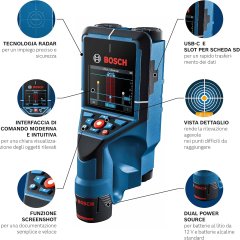 - BOSCH D-TECT 200 C Professional Rilevatore metalli, cavi, tubi plastica, (fornito senza batteria)