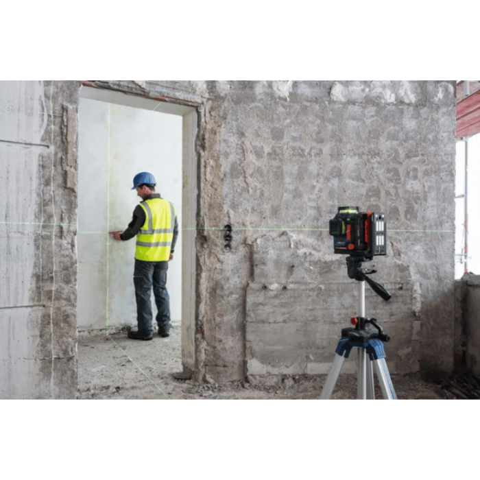 Livella laser a linee a 18V con triplice alimentazione, grado di protezione IP65 e raggio d’azione di 120 m