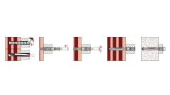 - Massima versatilità: la lunghezza della sezione espandente pari a 70 mm e l’espansione progressiva e indipendente delle lamelle permettono al tassello FUR di adattarsi perfettamente a tutti i tipi di materiali da costruzione;
