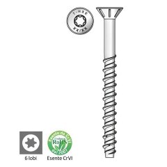 - HXE03 - CONCRETO® è la vite per calcestruzzo a Testa Piana Svasata con impronta a 6 lobi e con bugne sottotesta, in acciaio zincato