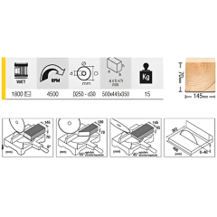 - Massime capacità di taglio: 145 x 70 mm. a 0° e 100 x 70 mm. a 45°
