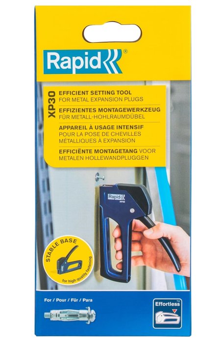 Facile da usare sia per utenti fai da te che per professionisti, l'XP30 è uno strumento resistente e affidabile per fissare facilmente i tasselli ad espansione su cartongesso e altri materiali da costruzione e copertura.