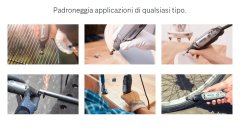 - Intagliare, incidere, fresare, tagliare, levigare, smerigliare, affilare, lucidare e pulire con un unico utensile