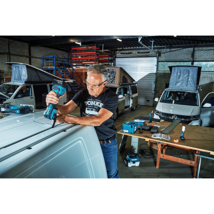 Il sistema antivibrazione AVT consente all’operatore un utilizzo anche prolungato con estremo comfort. Luce led per l’illuminazione dell’area di lavoro, DTM52 consente di effettuare tagli dal pieno, taglio di tasche, taglio di metalli e operazioni di levigatura e lucidatura.