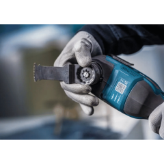 Offre un angolo di oscillazione da 4,0° per la massima efficienza di taglio. L'agevole meccanismo di aggancio consente una sostituzione rapida della lama senza dover ricorrere a strumenti supplementari e senza il rischio di perdere il perno di fissaggio.