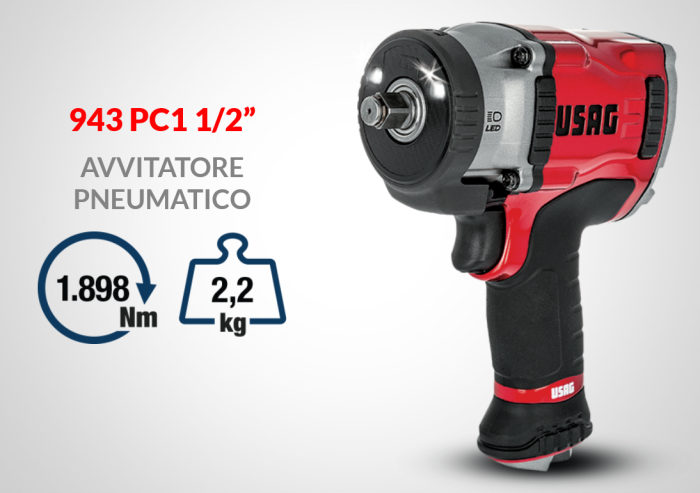 - Avvitatore pneumatico aria compressa con luce led frontale USAG 943 PC1 1/2"